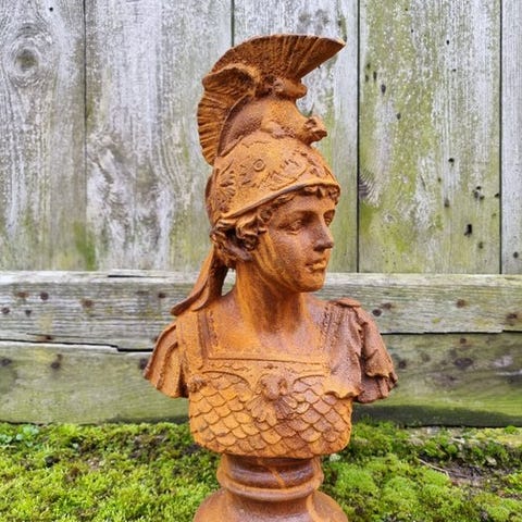 Statue af støbt metal af en kvinde-buste fra Europa, lavet af jern (støbejern) med en rusten patina, 26 cm høj, 14 cm dyb og 9 cm bred, uden underskrift og i god stand. Klik på den blå "gå til varen" knap, for at købe eller byde på denne vare. Den samlede pris vil blive vist inden du afgiver dit bud.