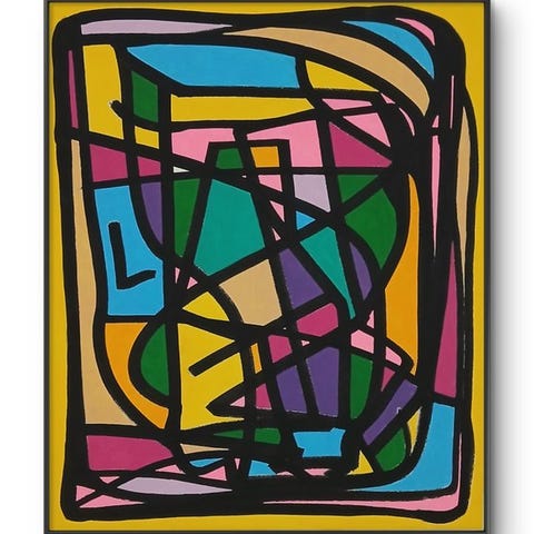Udført i olie på lærred præsenterer værket en kvindelig skikkelse, der svæver under vandet, fanget i et overgangsøjeblik: hverken fuldstændig nedsænket eller fuldt fremlyst. Den vertikale komposition forstærker fornemmelsen af løft, mens den øvre farveeksplosion — orange, gule og fragmenterede koraller — antyder filtreret lys, vital energi og transformation.