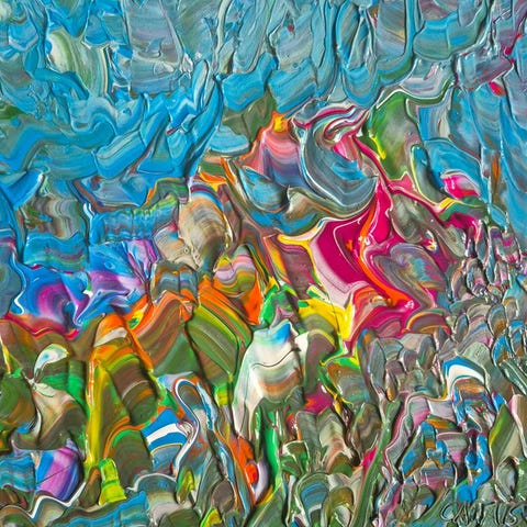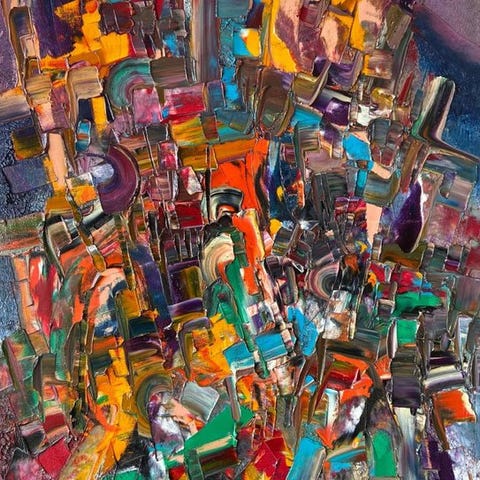 Han graver i maleriets overflade og skærer dybe furer, der synes at åbne veje eller sommetider forsvinde i farvernes tåger.