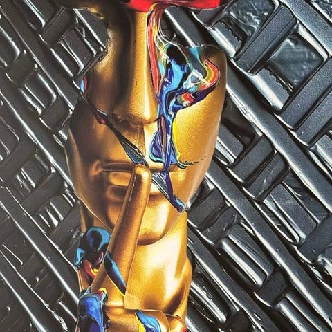 Please Silence, en harzu-sculpture af Bruno Cantais, 2026, akryl på resin, lakeret, edition 1, 27 cm høj, 7 cm bred, 8 cm dyb, 2 kg, Frankrig, fremragende stand, håndsigneret. Klik på den blå "gå til varen" knap, for at købe eller byde på denne vare. Den samlede pris vil blive vist inden du afgiver dit bud.