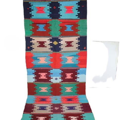 Dette håndvævede tæppe måler 182 cm i længden og 112 cm i bredden og er 100% håndvævet. Dets oprindelse og produktionssted er Nevşehir, Cappadocia-regionen. Tæppet har ingen pletter eller farveblødning, og trods sin alder bevarer det sit oprindelige udseende.