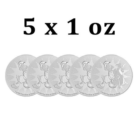 Fem 2022 Niue Shamrock 1 oz 2 NZD sølvmønter i kapsel, BU, .9999 fint sølv, Ø38 mm, præget af European Mint, oplag 25.000. Klik på den blå "gå til varen" knap, for at købe eller byde på denne vare. Den samlede pris vil blive vist inden du afgiver dit bud.