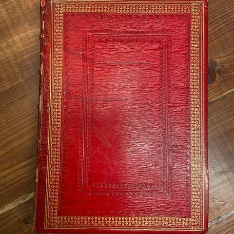 En smuk historie om den kongelige by Troja, som blev ødelagt, fornyet af Richard Benz; Berlin, Die Rabenpresse, 1938; original blindpræget læderrygbind, 214 sider med talrige håndfarvede illustrationer efter de oprindelige træsnit af U. Rossel, 4to, trykt i 900 numrerede eksemplarer (dette er nr. 20), første Bibliophiler Phönix-Druck af Die Rabenpresse. Klik på den blå "gå til varen" knap, for at købe eller byde på denne vare. Den samlede pris vil blive vist inden du afgiver dit bud.