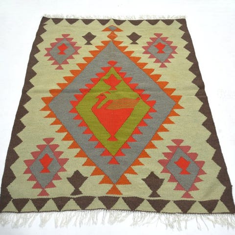 Dette er et helt nyt kilim, håndvævet og absolut smukt tæppe,