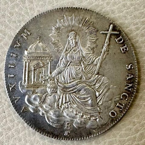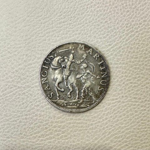 Gullskjold i AV, præget i Reggio Emilia under Ercole II d’Este (1534–1559); forside: våbenskjold i en ornamenteret kartusche; bagside: Jesus står vendt mod foran, holder korset og rører ved siden; vægt 3,16 g; sjælden. Klik på den blå "gå til varen" knap, for at købe eller byde på denne vare. Den samlede pris vil blive vist inden du afgiver dit bud.