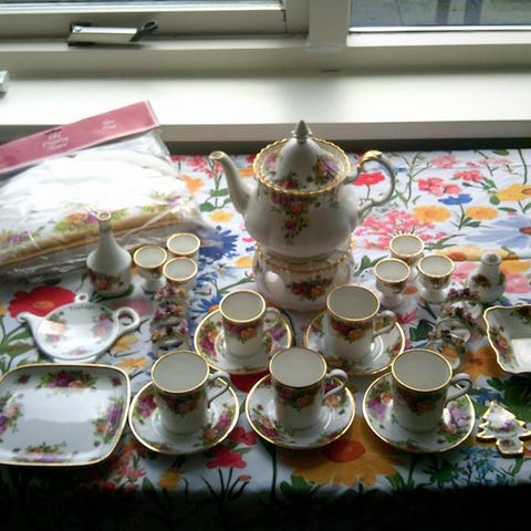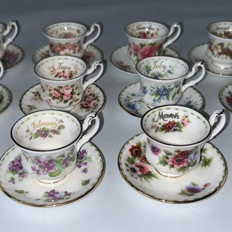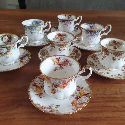 6 smukke klassiske kopper og skåle fra det ikoniske engelske topmærke Royal Albert med temaet Breamer og Celebration. Kopperne ser stadig fantastiske ud og har ingen chips eller små hårskader. De gyldne kanter er af varierende kvalitet, fra fantastisk til god. De vil blive pakket og sendt meget omhyggeligt.