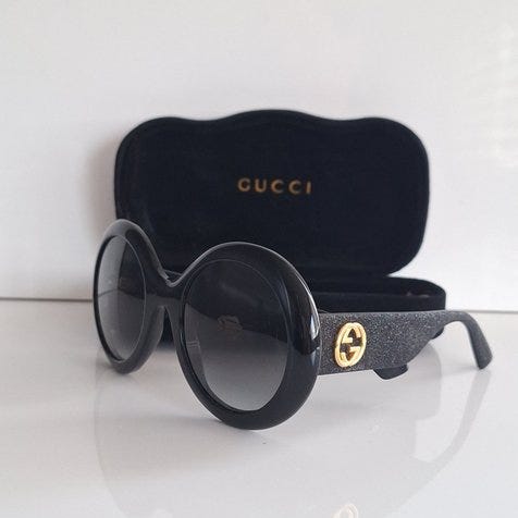Proponerer auktion et raffineret par solbriller fra Gucci, model GG 3164/S. Dette model skiller sig ud ved sin elegante oversize form, der giver et glamorøst og sofistikeret look.