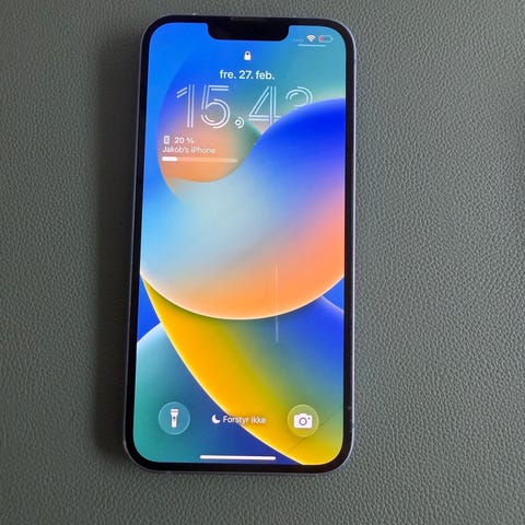 Skærmbeskyttelse og bagover følger med. Æske og originalt tilbehør