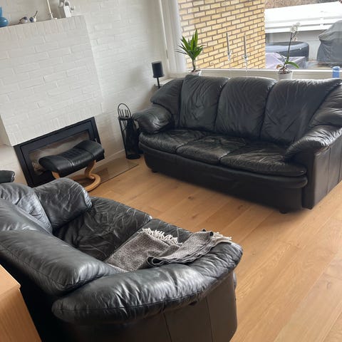 2 stole + 3 personers sofa i læder gives væk. Skal hentes i dag i Herfølge.