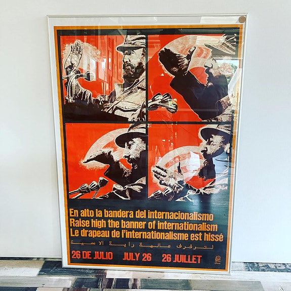 Den har lidt skrammer, især kanter og hjørner, men farverne er som de var da den blev produceret. Den er indrammet i aluminiumsramme, ca. 90 x 70 cm. Den sendes ikke