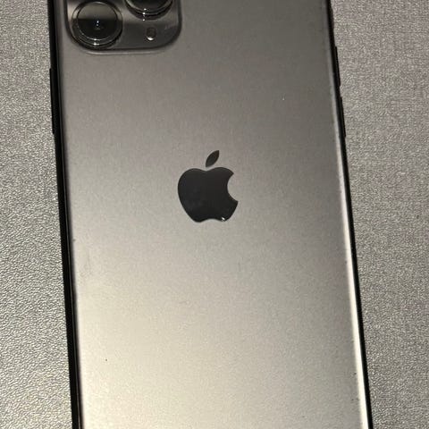 iPhone 11 Pro med cover, panserglas, telefonoplader og adapter. Panserglasset er helt nyt og klar til brug.
