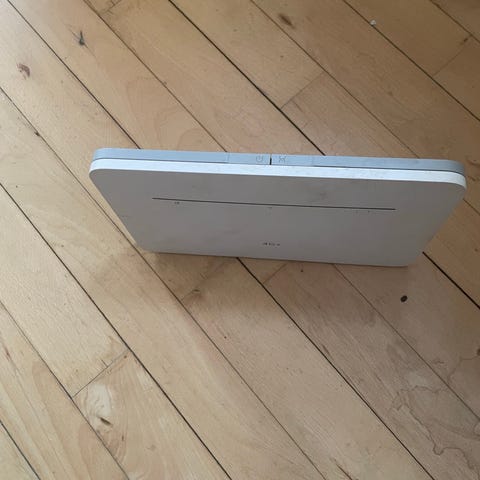 Huawei router i hvidt kabinet. Enheden har flere ethernet-porte på bagsiden til kablet netværksforbindelse. Fronten har statuslamper til netværk og drift. Egnet som central enhed i et hjemmenetværk eller mindre kontor, hvor der er behov for fordeling af internetforbindelse til flere enheder via kabel og trådløst netværk, afhængigt af modelens specifikationer. I god stand fejler ingenting, blev brugt knap et halvt år.