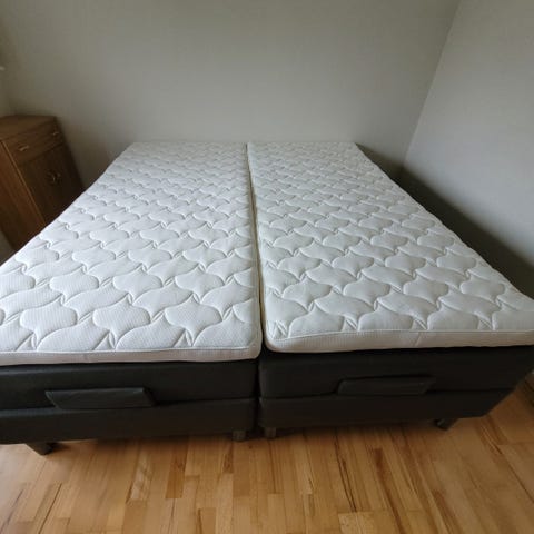 2 stk. á 90 x 200 cm, af mærket Svane. Inkl. madras og topmadras. Kablet fjernbetjening. Virker perfekt. Samlet pris 1.000 kr