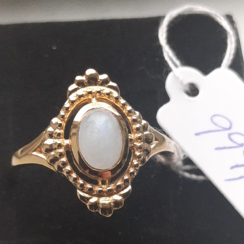 Smuk, feminin og elegant 18 karat forgyldt Sterlingsølv ring fra A Lemon Story prydet med en stor smuk blå Calcedon endvidere omkranset af smukke detaljer.