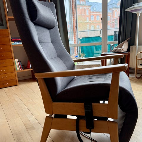 Farstrup Multiplus 5040 lænestol med fodskamel. Brugt men i fin stand. Nypris. 33,000,-