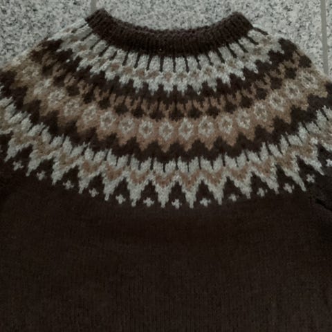 Ny, ubrugt håndstrikket islandsk trøje, i 100 % superwash øko tex uld. Passer til str. Medium.