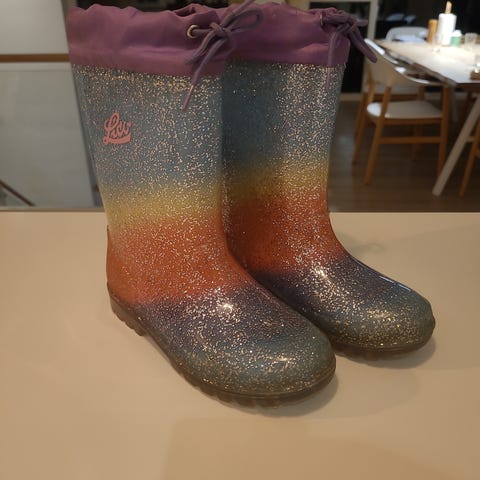 Lyserøde glimmer børne gummi støvler str 31/32 ( 21 cm mål )