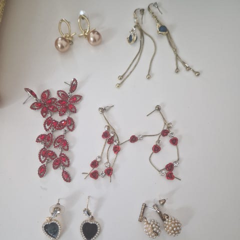 forgyldte øreringe til kvinde. Øreringene er udført i forgyldt materiale og har et dekorativt design med flere små elementer samlet i en klynge. De leveres i en æske, som egner sig til opbevaring af smykket. Velegnet som hverdagssmykke eller til mere formelle anledninger.