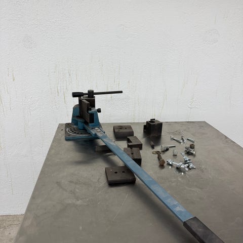 Manuel profilbukker til metal med langt håndtag. Bukkeren er monteret på en baseplade og har et drejeligt bukkebord med gradskala til vinkling af emner. Leveres med flere udskiftelige kæber og klodser samt diverse bolte og beslag til fastspænding af profiler. Velegnet til bukning af mindre metalprofiler og stålstænger i værksted eller hobbybrug.