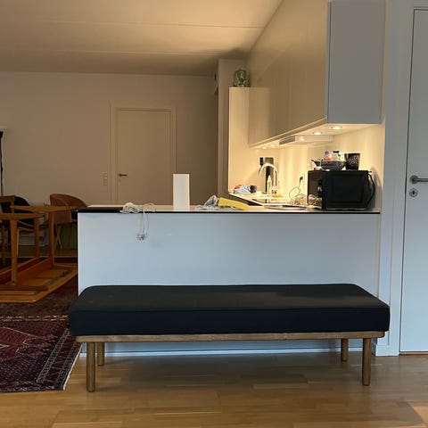 En special lavet sofa/daybed/ bænk med kvalitet hynde i mørk grøn. sofaen har 4 store opbevaring kasser under sig. hver kasse måler H: 25, D:80 B:65 så de er meget rummelige. hele sofaen er special lavet med genbrugstræ på Ydersiden så den får et lækkert look.