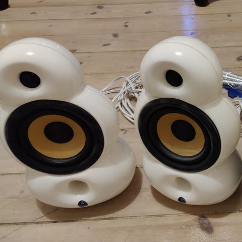 2 stk. MicroPod i Rød (Ferrarirød), 4 ohm, 40W. I original emballage med ben. Skrueterminaler. Velegnet til ungdomsværelset, spilkonsol, garagen/værkstedet med en Ferrarien eller den røde MGB.