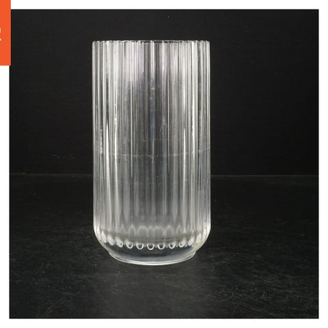 Lyngby vase i klar glas. Vasen har en cylindrisk form med riflet design, og størrelsen er Ø 8,5 cm og længde 15 cm. Den er ideel til dekoration og kan bruges til blomster. Vasen leveres i original emballage.