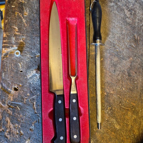 FORSKÆRRE SÆT, Flot eksklusivt forskærerkniv med strygestål og gaffel.