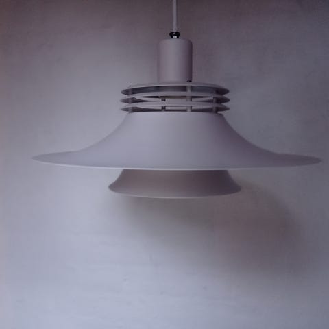 Dette er en rund pendellampe fremstillet af sort metaltråd, hvilket giver den et moderne og stilfuldt udtryk. Lampen har en diameter på omkring 60 cm og er designet til at hænge fra loftet som en del af belysningsindretningen. Den har en pæreholder og kommer med en ledning, så den kan tilsluttes til en loftsbelysningskilde.