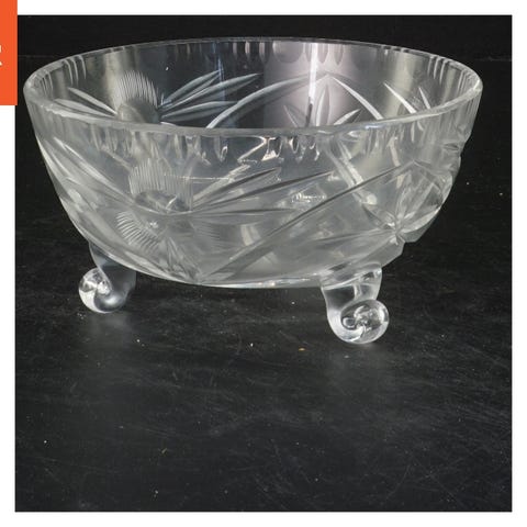 En skål lavet af krystal med indviklede dekorative mønstre og konturer. Skålen har en diameter på 26 cm, hvilket gør den ideel til at display frugt eller som en dekorativ centerpiece. Den har en oval form med en skåret kant, der tilføjer en elegant touch til skålens design. Skålen er velegnet til både praktisk brug og som et dekorativt element i hjemmet.