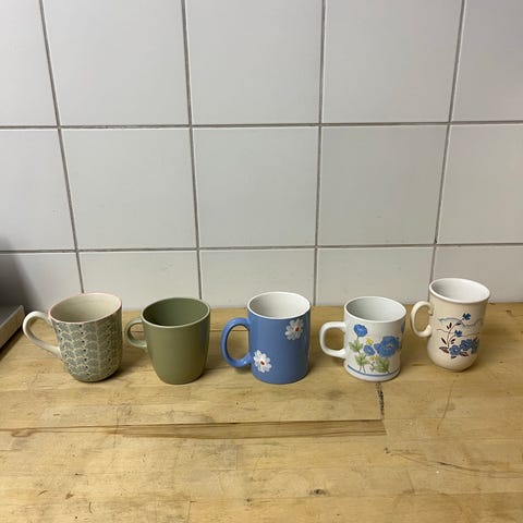6 krus tekrus kaffekrus kaffekopper m blomster, forår tulipan påskeliljer kopper retro som nye. kopper tekopper krus med skønne forårsblomster