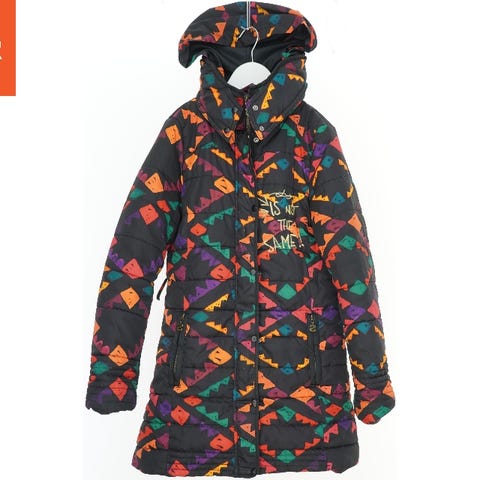 En lyserød vinterjakke med forside lynlås og to sidelommer. Jakken er polstret og designet til at holde brugeren varm. Der er nogle pletter på forsiden af jakken.