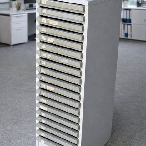 Sælger to fine kontormøbler til opbevaring. De har skyde-låger i begge sider med soft close.