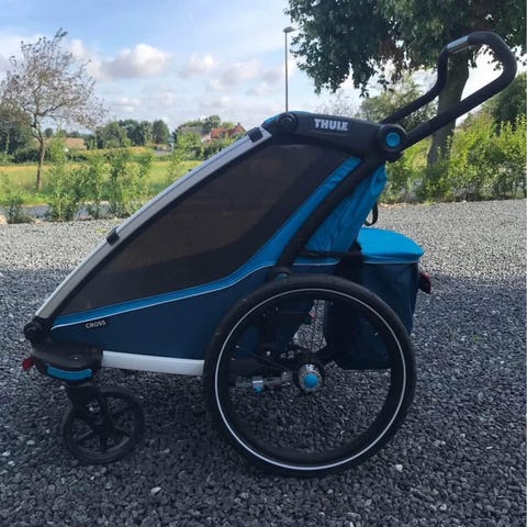 Fin vogn, som både kan bruges som cykelanhænger og klapvogn.