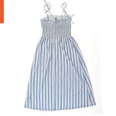 En enkel grøn kjole med spaghetti stropper og en flæset kant nederst. Materialet ser ud til at være let og behageligt.