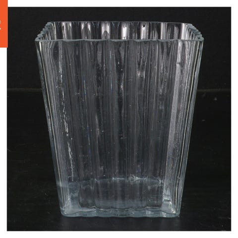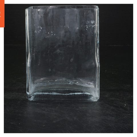Vasen er lavet af klart glas og har en høj, slank form med en bred åbning. Den er velegnet til lange blomsterstængler eller dekorative grene. Undersiden af vasen har en etiket med en stregkode og nummeret 13750. Størrelsen er 40x12 cm.