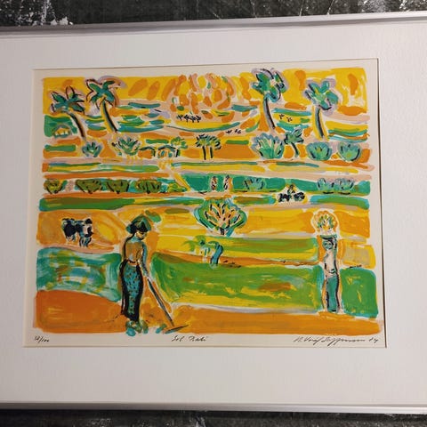 Litografi, Hans Voigt steffensen, motiv: Køer i sommerlandskab, b: 76.5 h: 56. Fast pris!