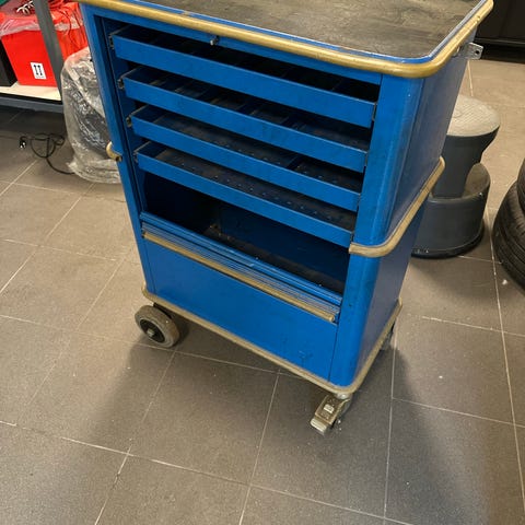 Velholdt værktøjsbord med hjul. Underskab med lås/nøgle