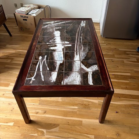 Kakkelsofabord i massiv eg. Str. lxbxh - 135x85x50 cm.
