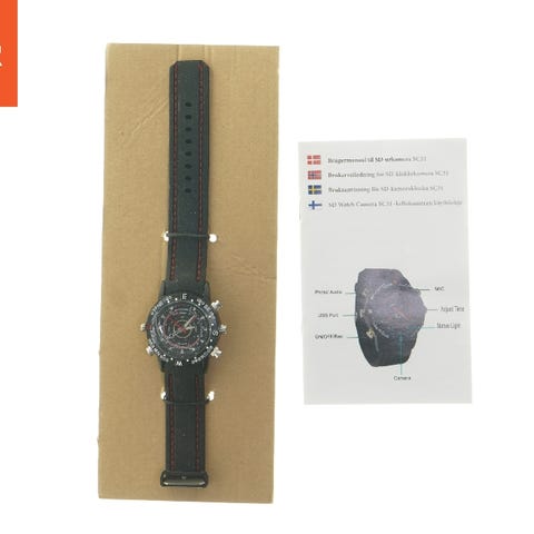 Digitalt ur med sort skive og rem. Uret har en metal kant og viser funktioner, der inkluderer 128 MB lagerkapacitet. Skiven er rund, og remmen har en justerbar spænde. Størrelsen på uret er 40 mm.