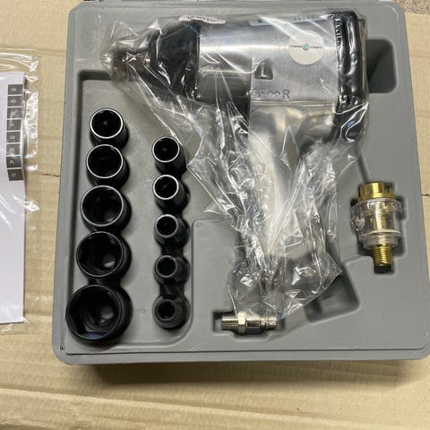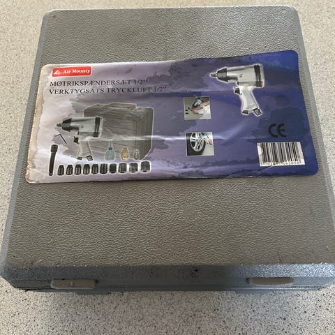 Faccom 1/2" luftslagnøgle i rød/sort plast og metal. Modellen drives af trykluft via standard luftkobling i bunden af håndtaget. Værktøjet har pistolgreb med gummibelægning og justerbar udløser. Egnet til opgaver som hjulskift og anden montage, hvor der kræves høj momentkraft fra en 1/2" slagnøgle.
