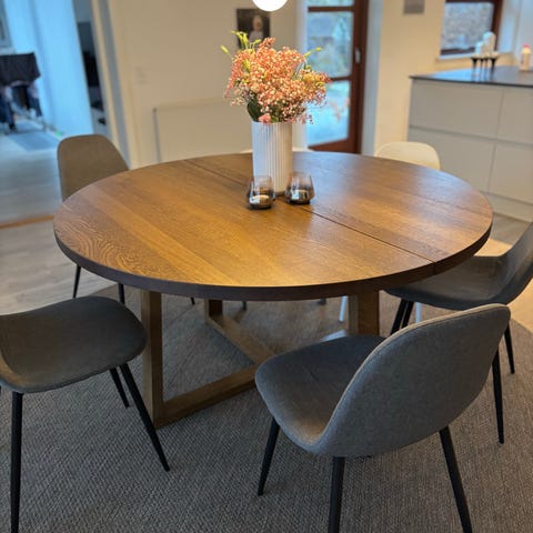Rundt massiv egetræs spisebord