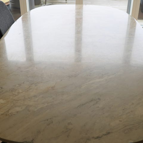 Elegant spisebord med bordplade i smuk, mørk Emperador-marmor