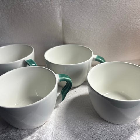 Kähler kopper i stribet design i flere farver. Kopperne er fremstillet i porcelæn og har vandrette striber i forskellige farvekombinationer.