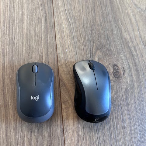 Logitech trådløs mus i grå og sort. Kompakt model egnet som rejse- eller laptopmus. Musen har to hovedknapper og scrollhjul samt batterirum i bunden. Leveres med blødt etui til opbevaring og transport. Velegnet til brug sammen med computer som standard pegeredskab. Virker fejlfrit, skal muligvis snart have nyt batteri