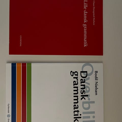 Sæt med danske grammatik- og sprogbøger. Bøgerne omhandler blandt andet grammatik, stavelse, tegnsætning og udtale samt eksempler på korrekt sprogbrug. Egnet til studerende, undervisere eller andre, der ønsker opslagsværker og materiale til træning i dansk sprog og grammatik.