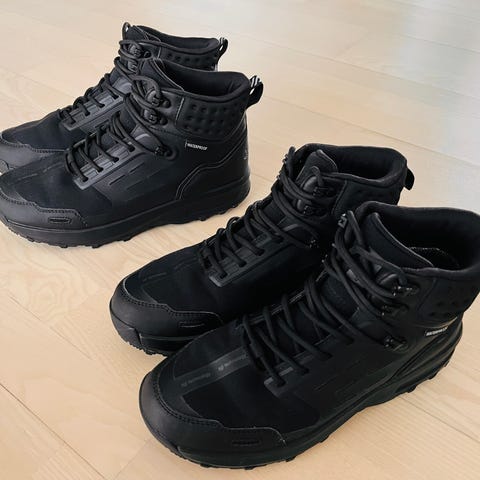 Begge par er sidste års model som hedder TRX WP 1.0 hvor ny prisen var kr. 1.995,-. Den nye model fra i år som hedder 2.0 koster 2.095,- hvor den eneste forskel er et andet mønster i sålen (se sidste billede).