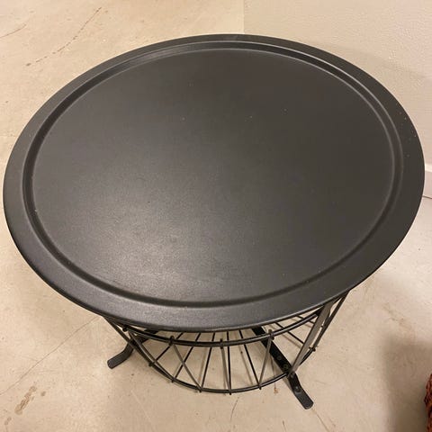 Ikea sofabord/ sengebord i metal med låg i træ. Har nogle små mærker på låget