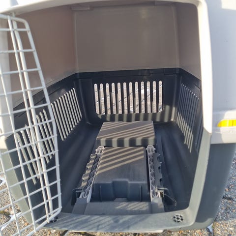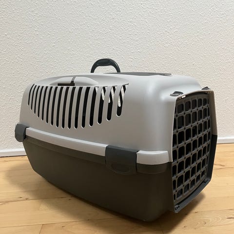 UBRUGT…..Stefanplast Gulliver 2 transportkasse til kæledyr med metalgitterdør. Kassen er fremstillet i plast og måler ca. 55 x 36 x 35 cm. Den er egnet til mindre dyr med en maks. vægt på op til ca. 8 kg. Farven er mørkegrå og lysegrå. Transportkassen har ventilationsåbninger i siderne, bærehåndtag på toppen samt et lille opbevaringsrum i låget. Velegnet til transport af mindre hunde eller katte i bil eller til dyrlægebesøg, hvor der kræves en lukket og ventileret boks.