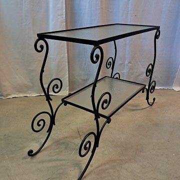 Plantebord i malet metal med glasplader, fra 1940erne.