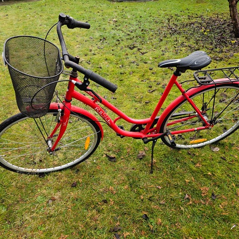 Cyklen er fra 2021 og har stået inde. Den har været i brug i ca 1 måned. Cyklen trænger måske til, at blive spændt efter og lidt mere luft i dækkene - men, ellers er den i pæn stand.